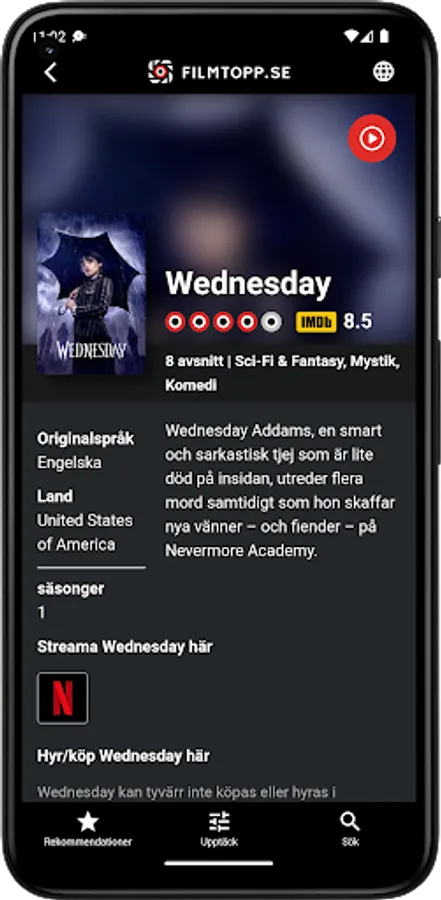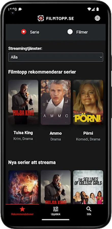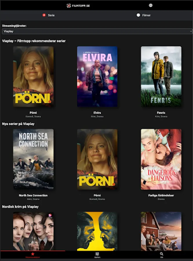 Navigate based on your streaming services and find your best movie and series tips. We have collected ALL movies and series from ALL streaming services. With Sweden's largest streaming editorial office, we have also filled the app with all imaginable information to delve into.