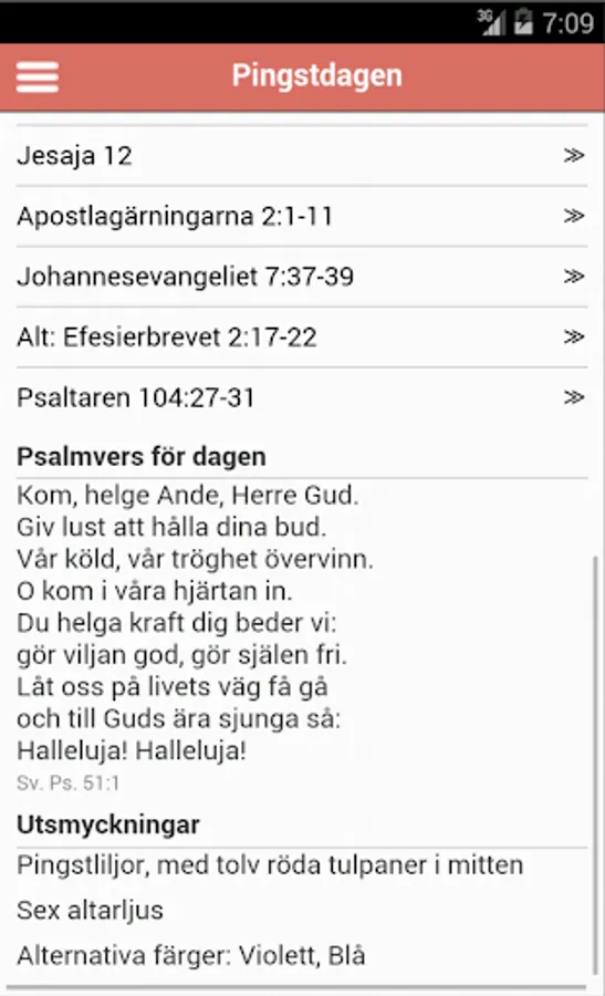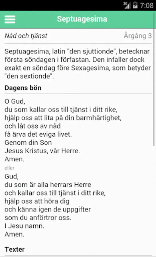 The church year is an app that helps you keep track of the Swedish Church Sundays and public holidays during the year. The church year is always opened on the holiday that is current right now. The app also has a calendar where you can check out all the ecclesiastical year days. Kyrkoårsappen displays information about the holidays: the theme, Daily prayers, relevant Bible passages, the liturgical color it has and how to decorate the church with candles and flowers. For each holiday is also a hymn from the hymnal that suits the theme of the day.