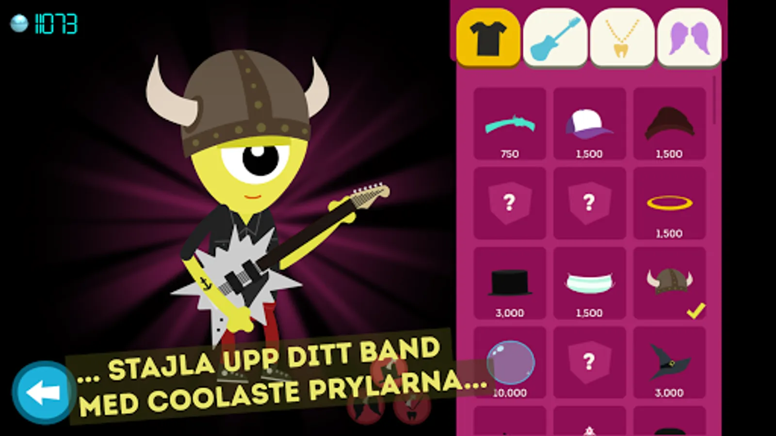 Boast your characters with the points you've collected! Determine which outfits, instruments and hairstyles band members should have and choose between three different music styles. Before concert and toothbrush you have to choose which scene and decor that suits your band and practice the Rocka Munnen song properly! When you are satisfied with the music, we start recording the concert when your own cool band appears.