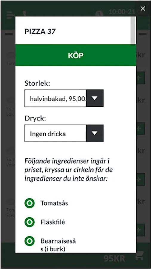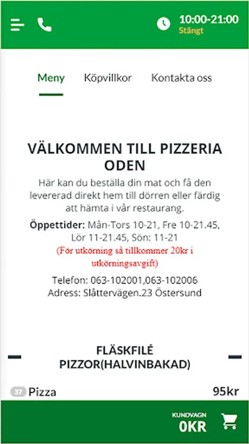 We offer everything in snabbmatsväg such as pizza, burgers, kebabs, salad, etc.