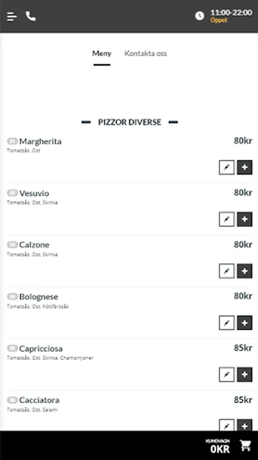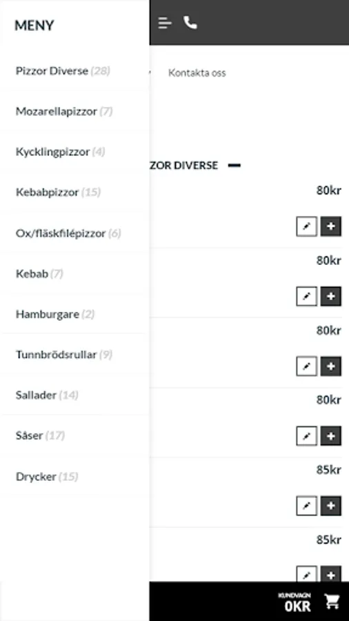 We offer everything in snabbmatsväg such as pizza, burgers, kebabs, salad, etc.