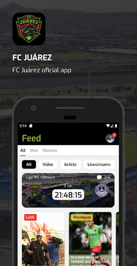 A new official FC Juarez app, with exclusive video content and match coverage, plus all the information about the matches and players you need to support the team you love.