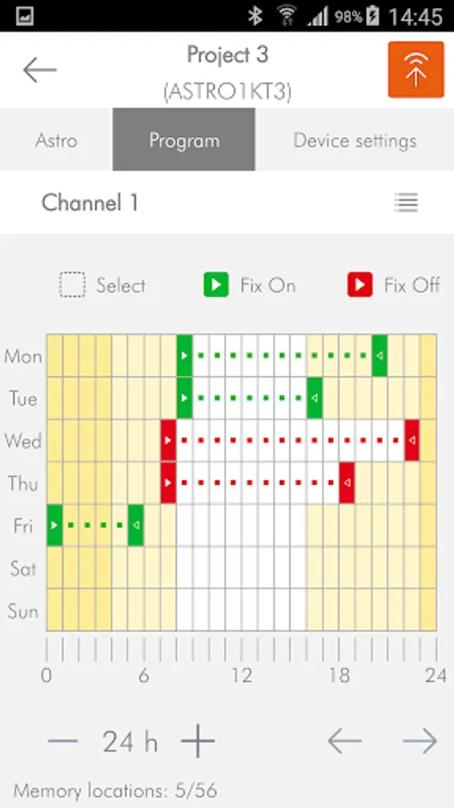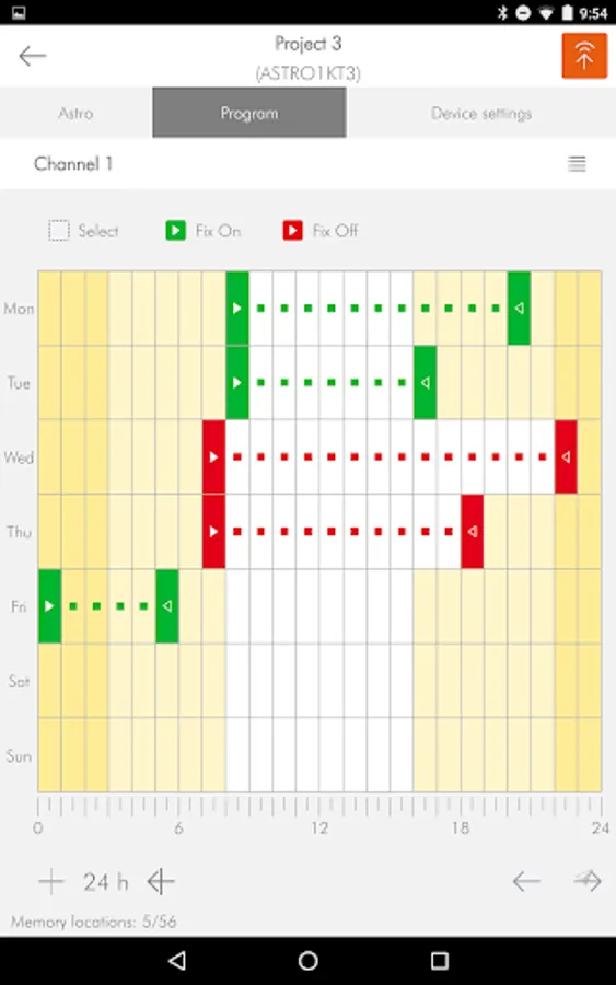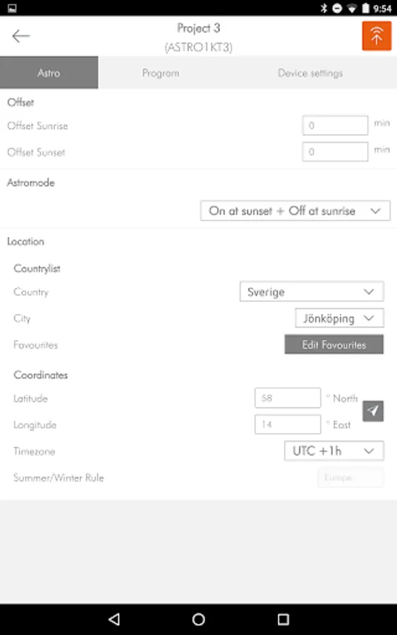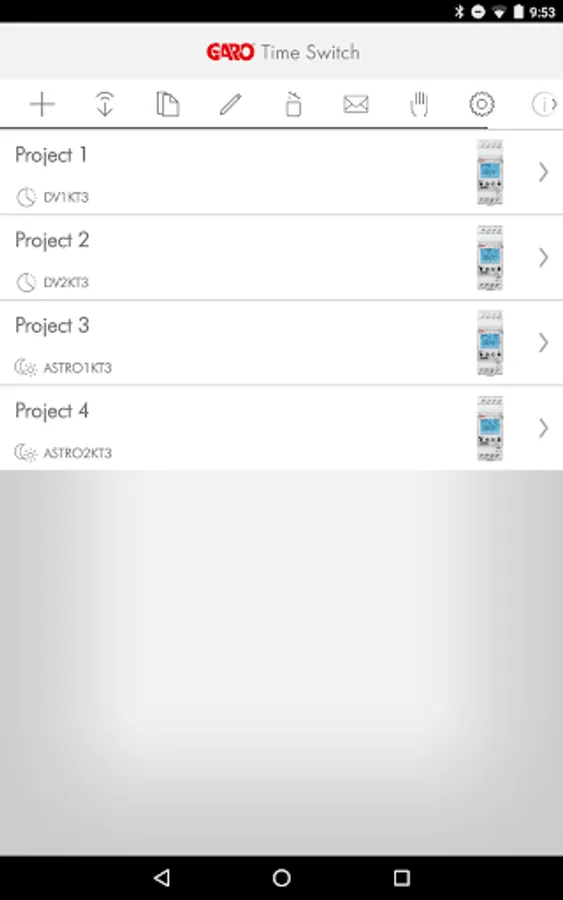 GARO Time Switch app is an application made to make programs easier and to have a better overview of what settings is done in the digital time switches from GARO’s new KT3 line. The app can be used on a smartphone or a tablet with Bluetooth. Connection between tablet/phone and the Time switch goes through a Bluetooth dongle. The dongle is an accessory to the KT3 line of time switches and is needed to transfer the program from application to the time switch. The Time switch app controls both time switches with weekly program and also for switches with an ASTRO function.