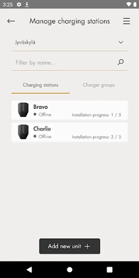 The same app is also used by the installer of the charging stations, to make configurations, manage dynamic loadmanagement systems on several levels.