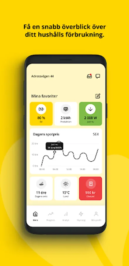 With Skånska Energi's app, you can gain a better understanding of your electricity consumption and monitor your environmental impact. The app is filled with tips, forecasts and analyzes - all to make it so easy for you to understand your consumption. Now it's easy to be involved and make smart choices for both your wallet and the environment!