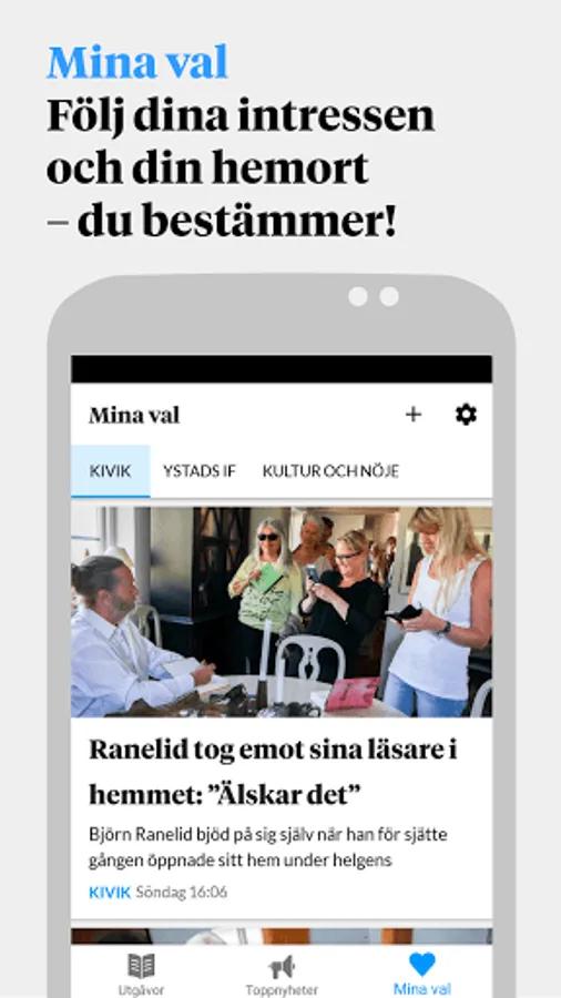 Top news is the news flow in the app that is most similar to what you are used to from the news site. The content you see here is the latest that has happened and what the editors consider to be most important right now.