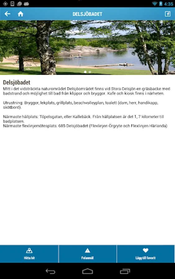 The bathing app is developed by the City of Gothenburg. With the app you can find at our local beaches and swimming pools in Gothenburg. Not sure if it's time for a dip talk app on how hot it is in the water (between May and August). Find the nearest beach by map, save your favorites, and take easily reachable by public transport. Forest Lakes with small beaches, salty beaches with sun-warmed rocks or winter warm swimming pools - in the app there is something for all swimmers.