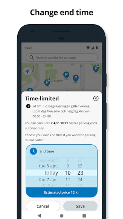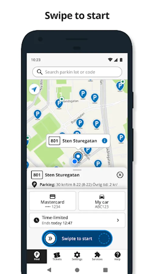 The app can be used on the parking spaces marked with the Göteborg Stads parkeringsbolag.