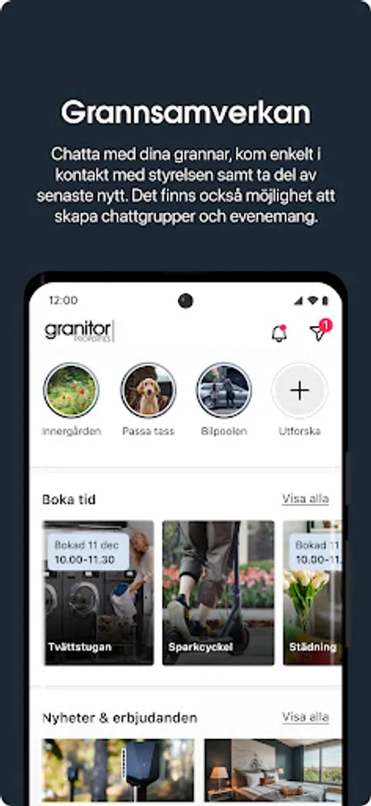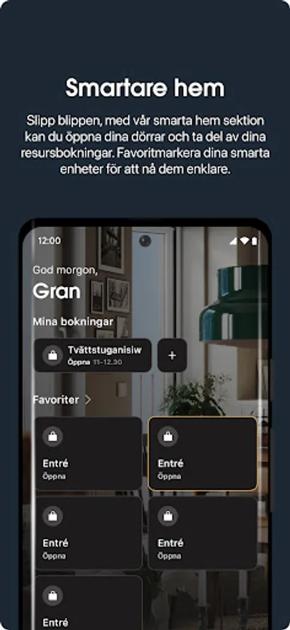 In our app, we have collected everything about your home. Your home life has never been more flexible, simple and safe. In the app, you can communicate with your neighbours, see your housing folder, submit fault reports and much more.