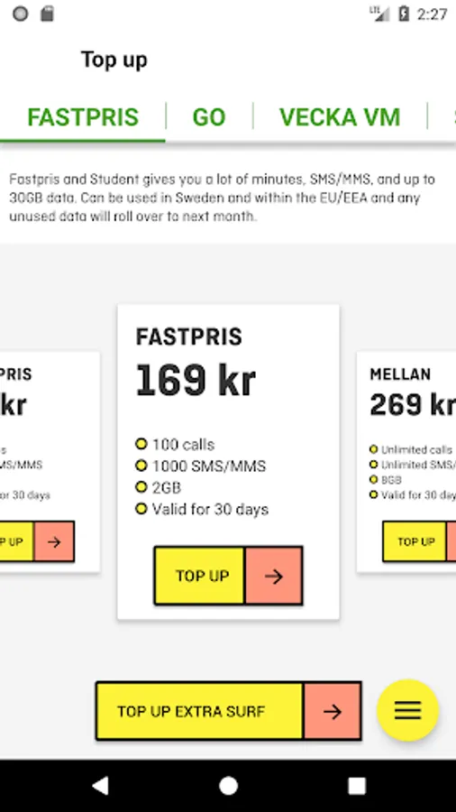 Top up quick and easy! In the Halebops Ladda-app, you can choose when and what you want to top up - mobile phone cards, mobile broadband or additional surfing. The app is easy to use and safe. Top up your or someone elses prepaid account directly on your mobile or tablet, and you pay with swish or payment card that you easily and securely register in the app. You can also create a subscription if you want the top up to be done automatically every 30 days.