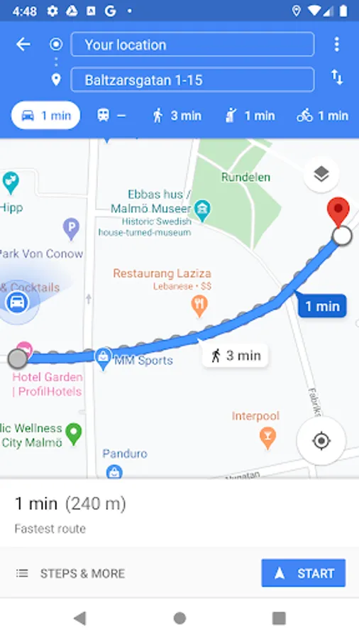 The app locates you and centers the map on your location, making it easy to find parking spaces near you. When you click on a parking space, you can choose to open the route description in Maps, so you can easily drive straight to your parking space.