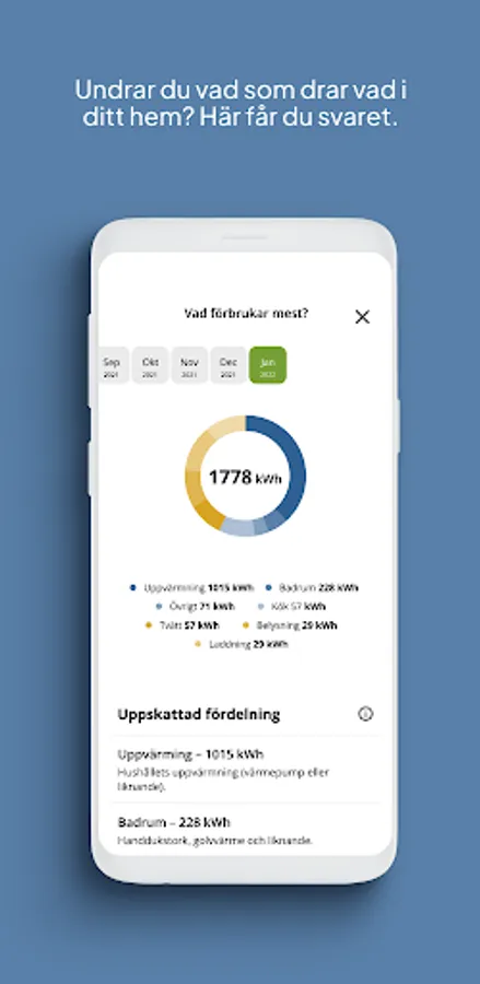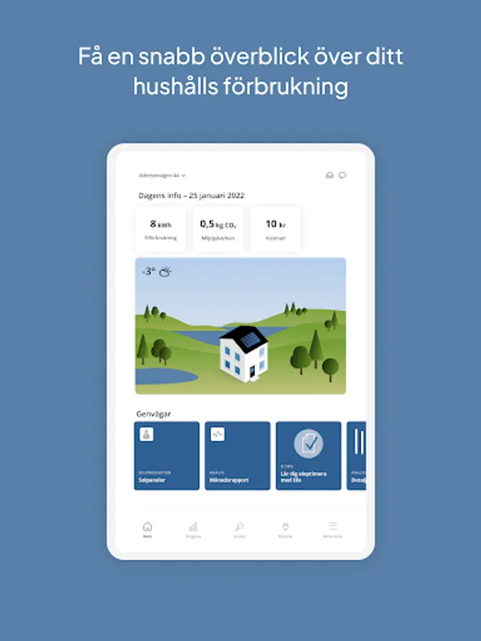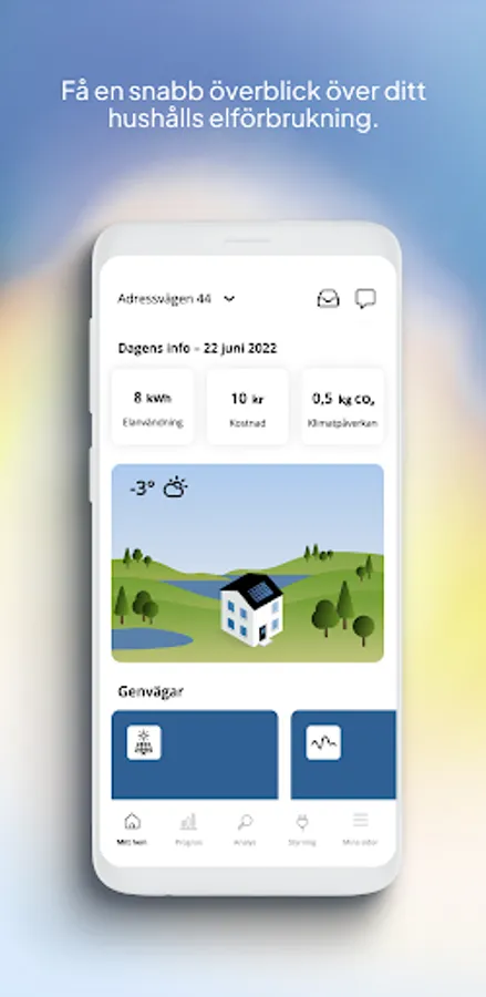 Ladda ner vår app och få en smidig överblick och kontroll över din elanvändning. Med hjälp av prognoser och tips, direkt i mobilen, blir du enkelt en smartare elanvändare och kan sänka din elförbrukning och kostnad.