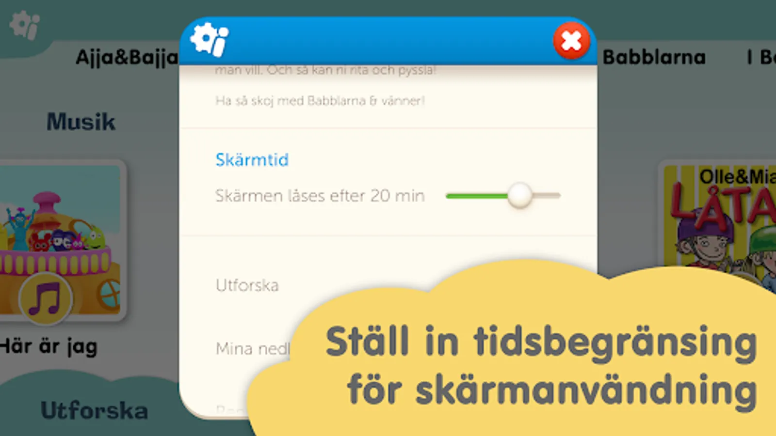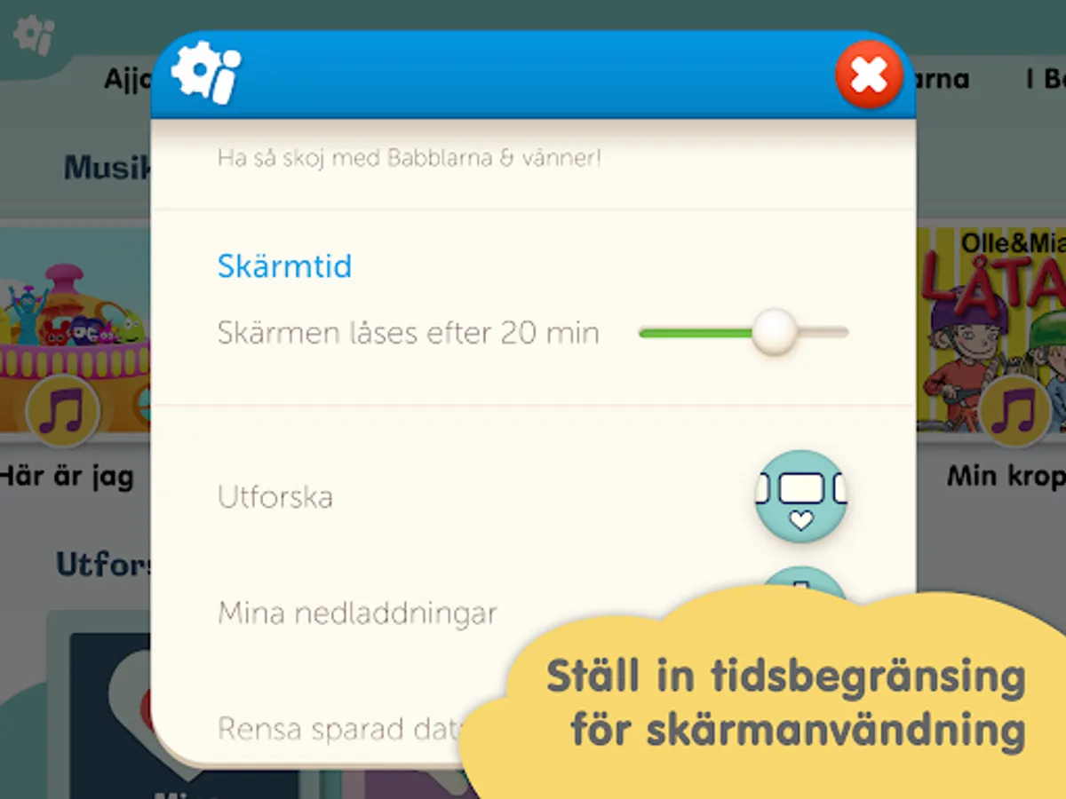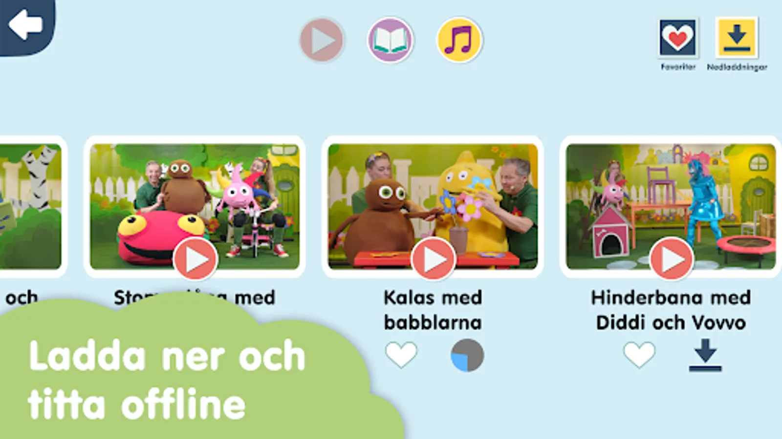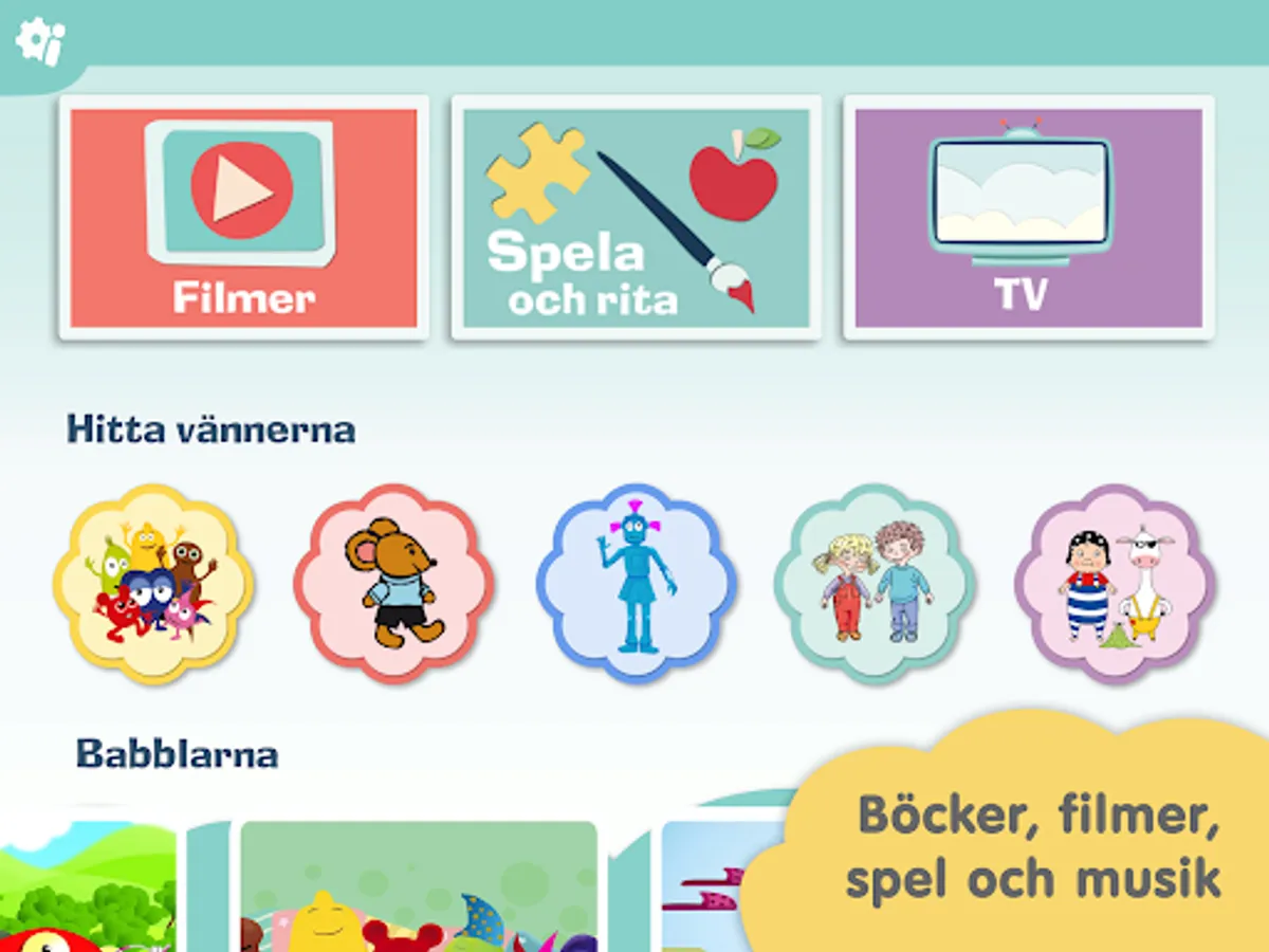 Babblerna and Vänner have a lot of fun content! Everything is adapted for small children and it is easy to choose from your favorites - or just let yourself be amused by the preselected content on the TV.