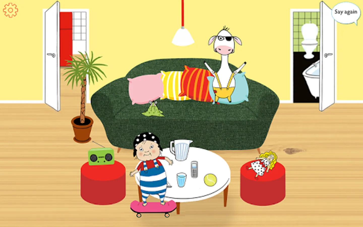 This app can be used in several ways. By default, ”intructions” and ”naming” are turned on in settings and the app will name the items the child points to, and the child will get to help Pippa and Boo by following simple instructions. In this way we help build vocabulary and language comprehension.