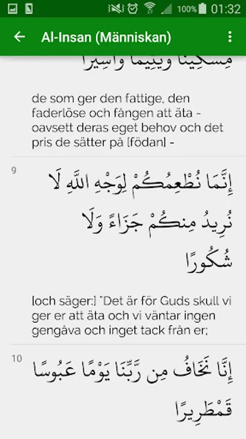 In this application, you have the ability to read the Quran in both Swedish and Arabic. You can also select your preferred language settings. No internet required to use this app!