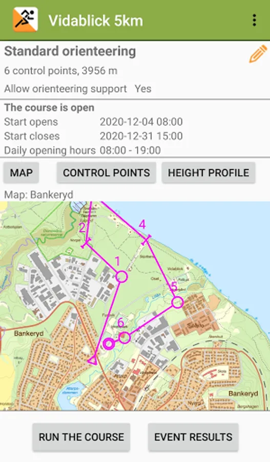 The courses can be one of four different types: standard orientering, free order orienteering, rogaining or scatter orienteering.