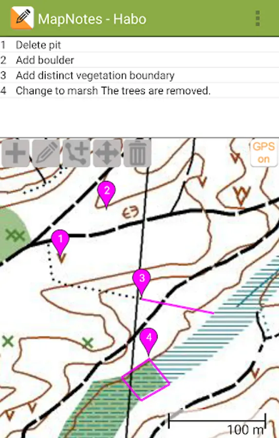 The app 'Map Notes' simplifies the work to revise orienteering maps by enabling you to make your revision notes directly in the smartphone.