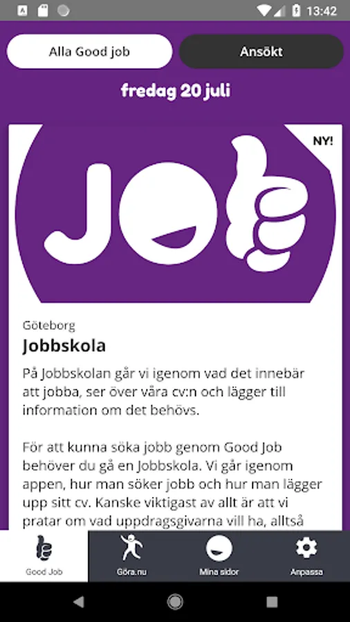 Good Job is for those who are over 18 and want to work extra. You can add your CV and apply for jobs in the app. In order to apply for a job through the Good Job you need to go a Job School, apply it to the app.