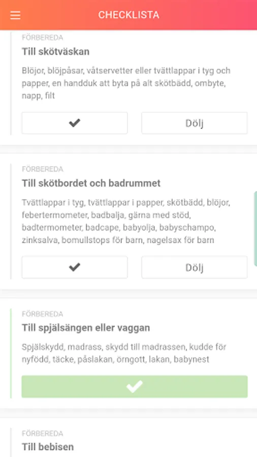 Smart checklists to help you remember things that might be good to have. For example, what do you need to equip your stroller with?