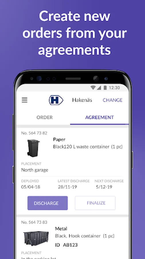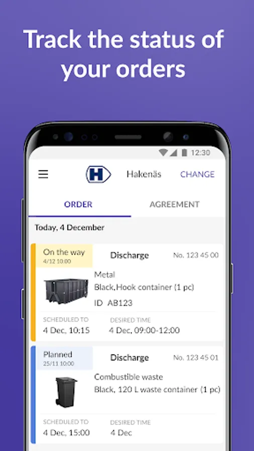 Orderit is an app where customers easily can see their waste containers (skips) in-field and current work orders. The app allows the customer to place orders for emptying or returning of containers. Information about work orders are shared between customer, driver and transport management in real time. Orderit is developed specifically for the recycling business and it gives the customer a complete overview of its container leases and saves the customer a phone call to place an order. The driver can easily update information such as weight and numbers of units and report deviations from the original work order.