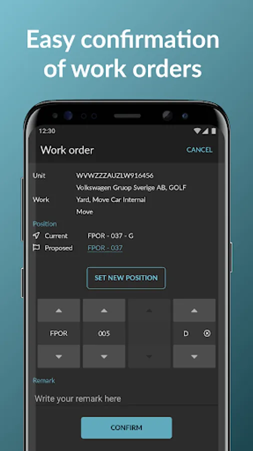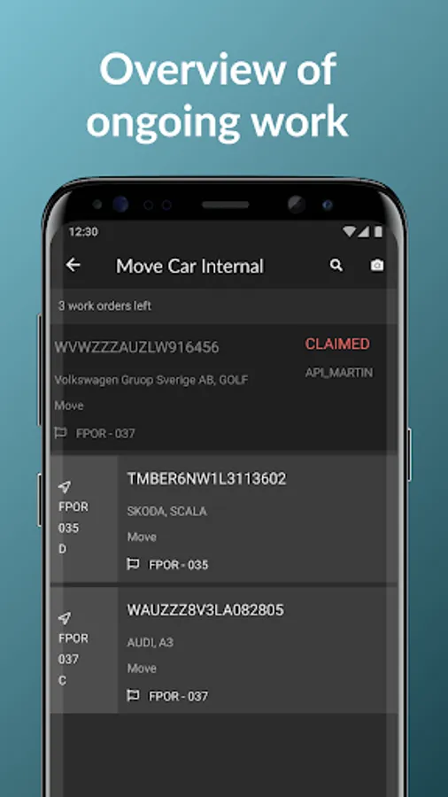 - Search for work orders by barcode, QR code or keyboard (min 4 characters)