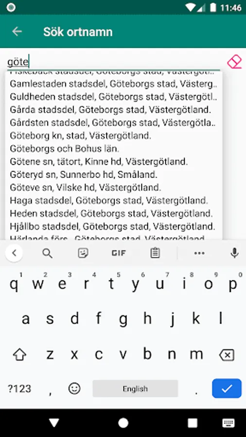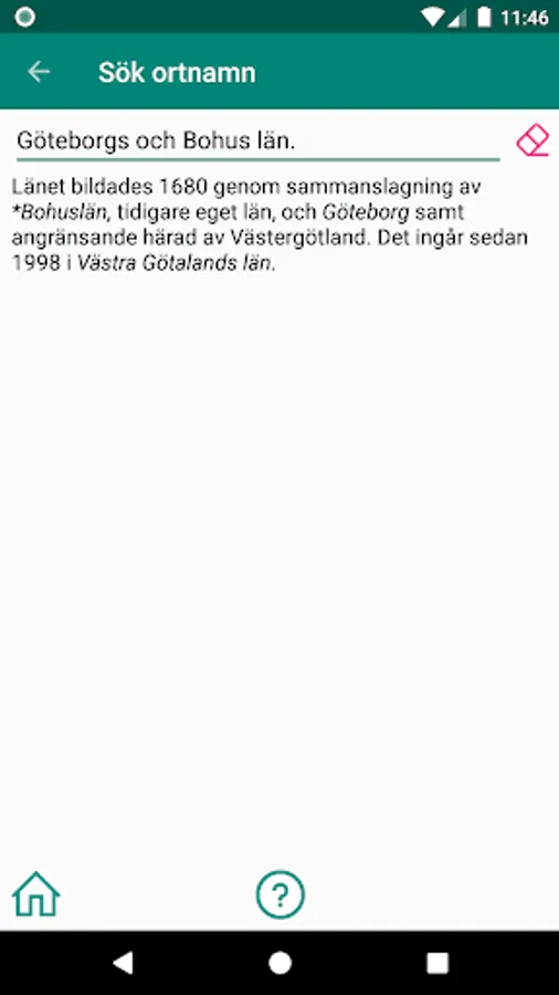 This app is in no way linked to the Institute of Languages and Folk Memories in Uppsala, but is an initiative of its own to make it easy to search a database containing almost 6000 place names with associated descriptions.