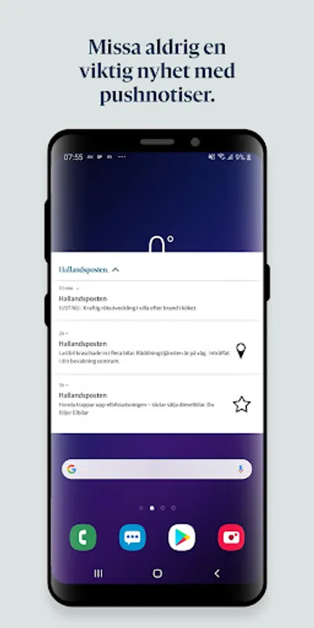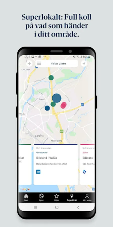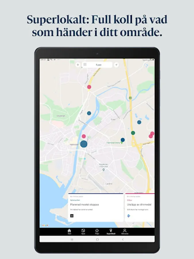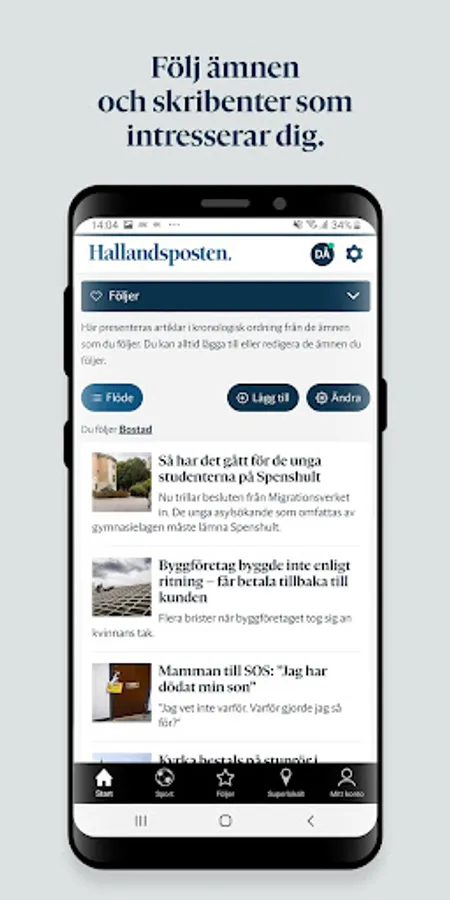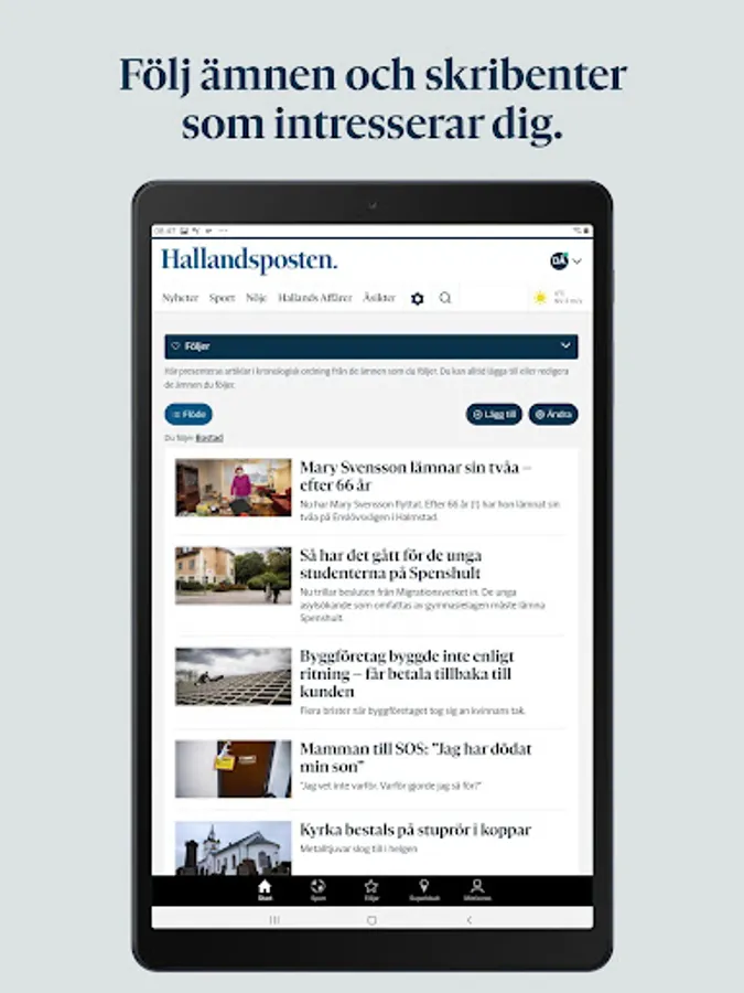 With Hallandsposten's app you can follow the topics and writers you care about and create your own news feed. You can also set up so that you receive a push note when something has happened within your guarded areas.