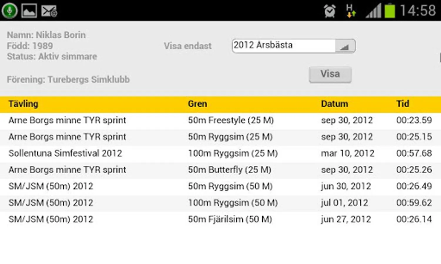 Follow swimming competitions in Sweden, Denmark and Finland live in your phone.