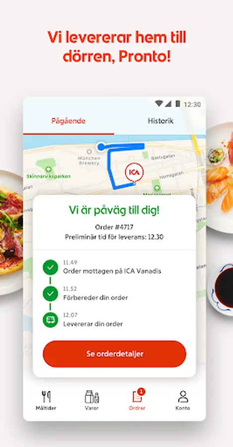 With ICA Pronto you can organize the evening's dinner while you supplement what you lack at home. Choose from hot and cold food for all tastes, as well as a selection of products from your local store.