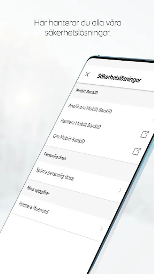 - Log in with Mobile BankID or Security box and bank card.