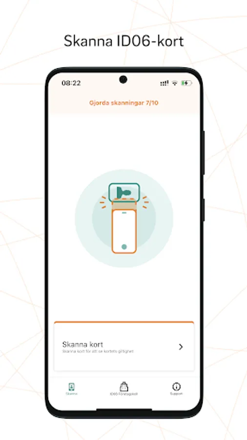 The checks are carried out using the NFC reader in your phone. You swipe the ID06 card against the reader in your mobile to verify the card's certificate against ID06.
