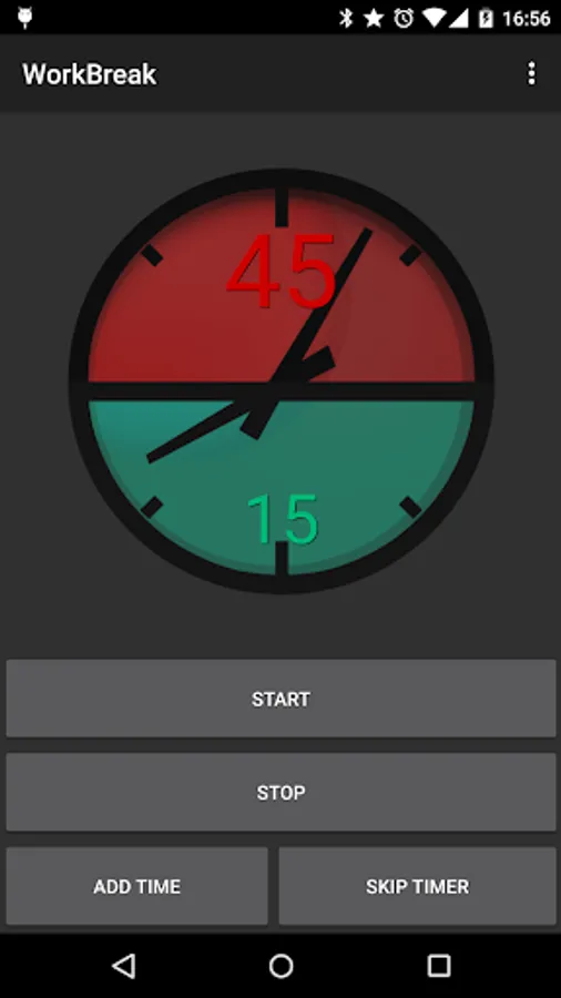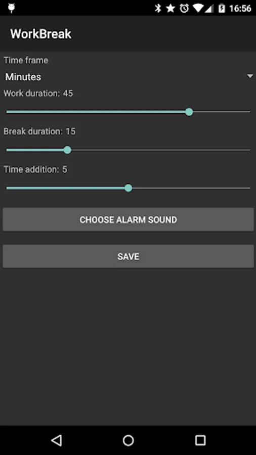 When the work duration reaches zero, an alarm (the device's default alarm) will fire, notifying you that it's time to take a break.