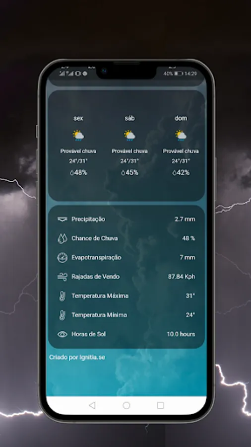 - Previsão horária e diária para os seguintes 3 dias e poderá verificar:
