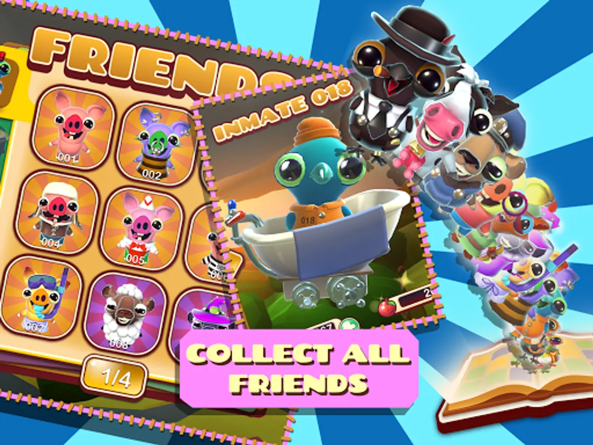 No matter which character you choose, it’s your task to guide your character to safety and avoid being hauled back to prison. At the end of each level, you’ll have a chance to party with your friends at the Happyplace - but don’t get too comfortable, your captors are never far behind.