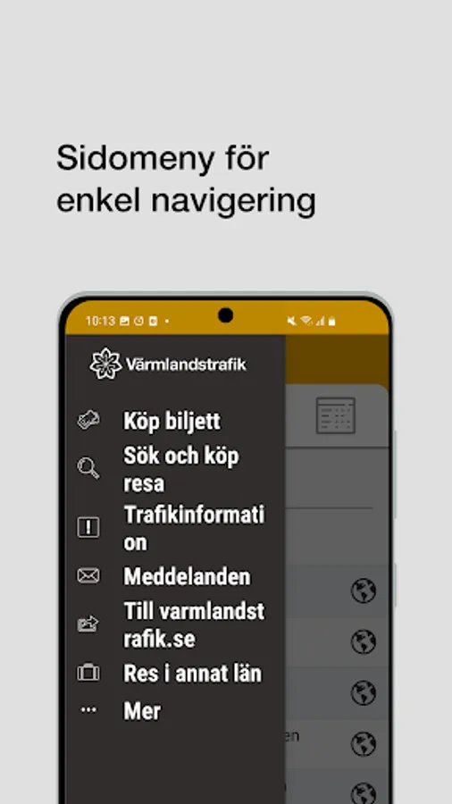 Värmlandstrafik also provides traffic information when traveling outside of Värmland. Use the Res in another county, you can search and purchase travel in large parts of Sweden - an app for 83% of Sweden.