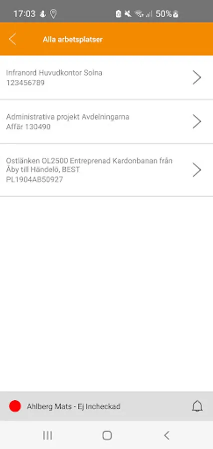 Infranord Personal Ledger allows you to check in and out at Infranord AB's workplaces. It is intended for internal and external personnel working in Infranord AB's operations in Sweden. Bringing staff ledge is since 2016-01-01 a requirement from the Swedish Tax Agency and applies to all personnel present on Infranord workplaces. Contact your supervisor or employer within Infranord to obtain login information.