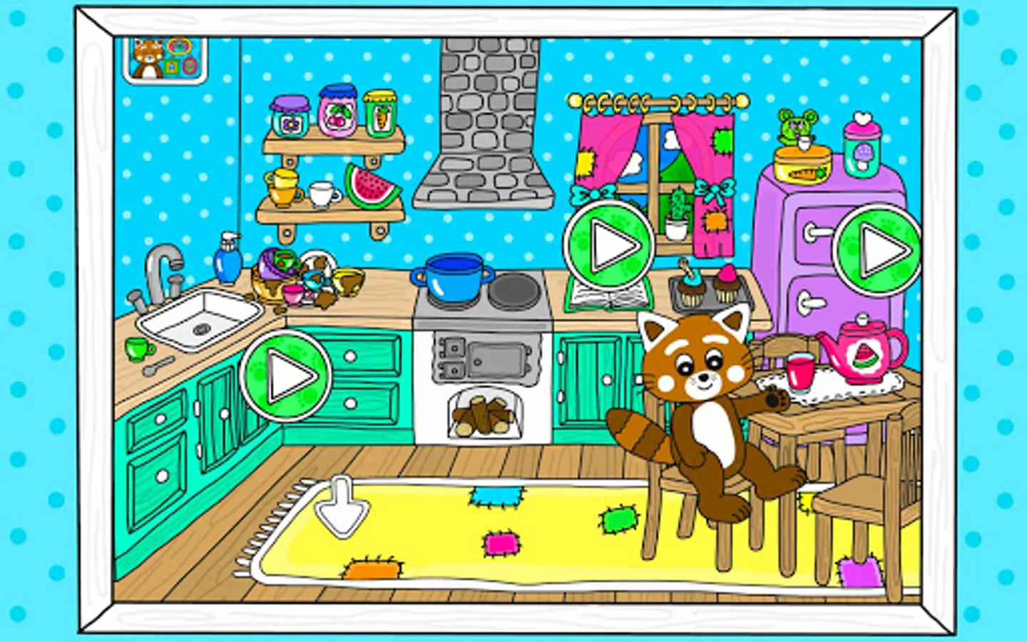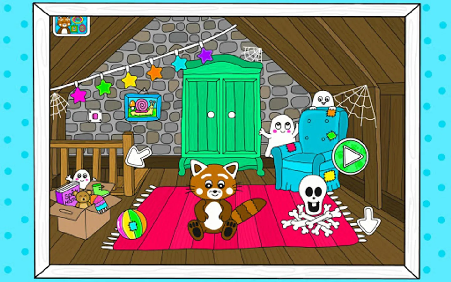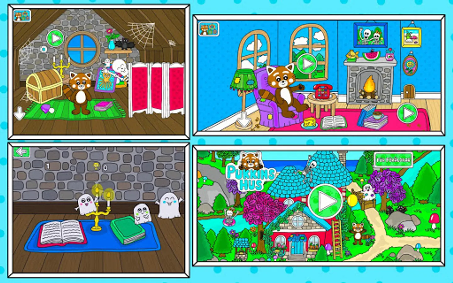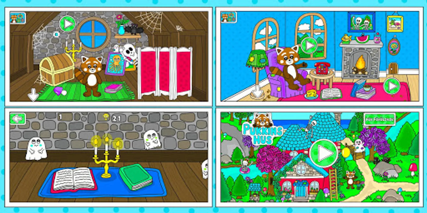 Welcome to Pukkin's cozy house! Explore all eight rooms filled with fun interactive objects and characters just waiting to be discovered. Pukkin's House is a fun and educational game for children with atmospheric music and fun sound effects.