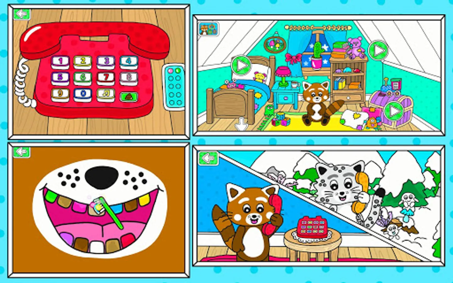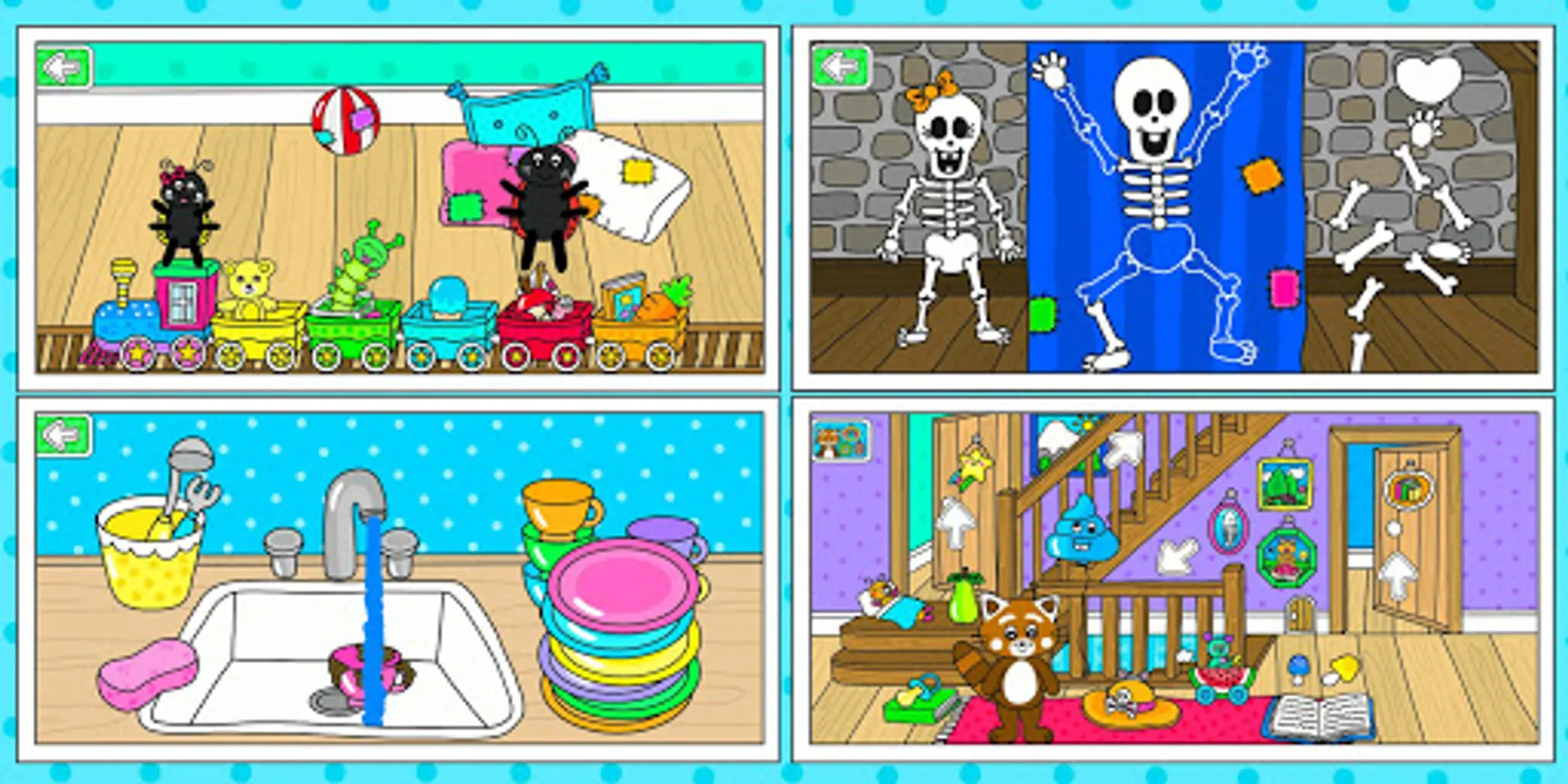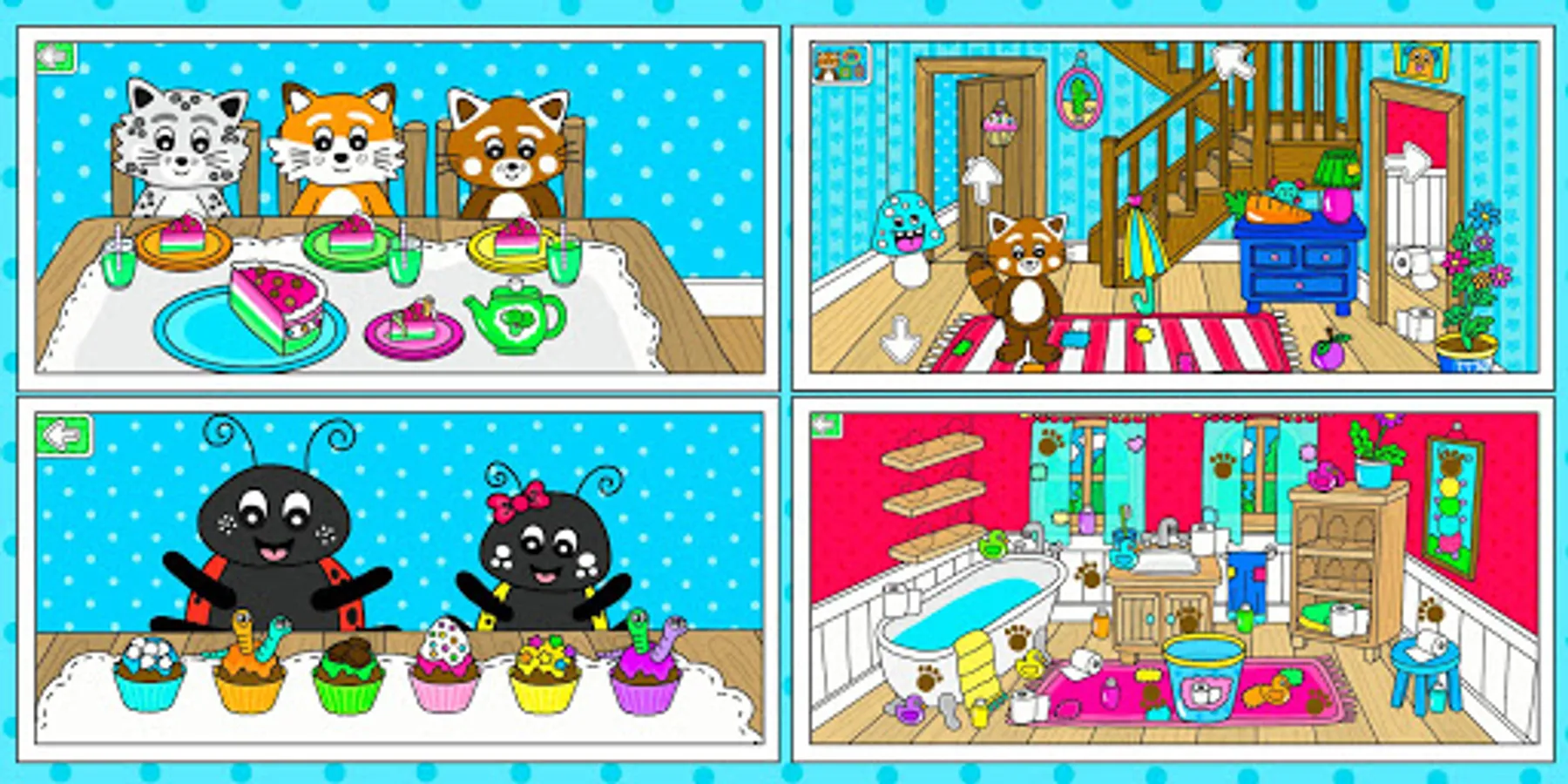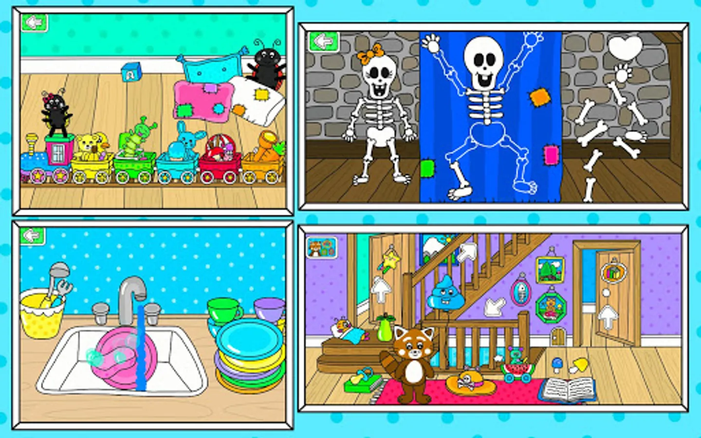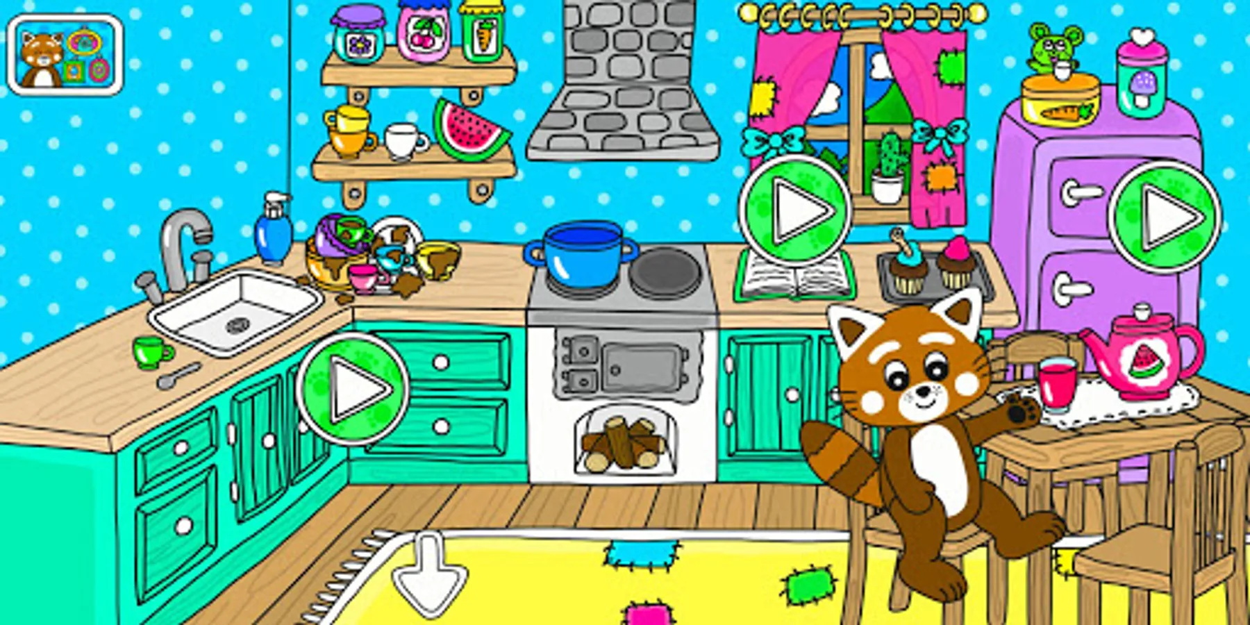 Welcome to Pukkin's cozy house! Explore all eight rooms filled with fun interactive objects and characters just waiting to be discovered. Pukkin's House is a fun and educational game for children with atmospheric music and fun sound effects.