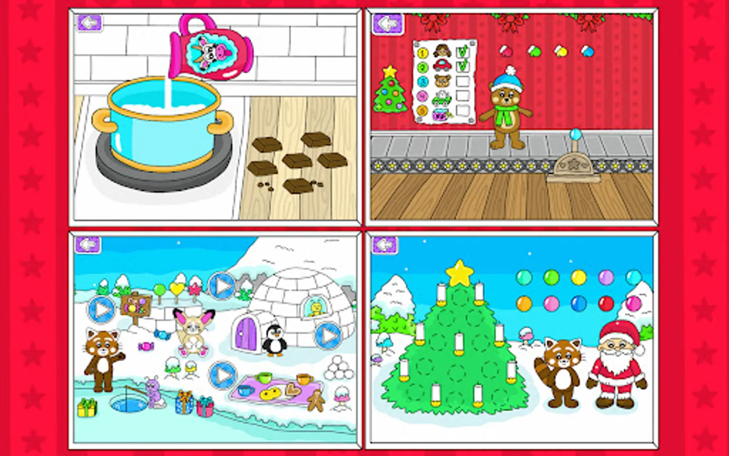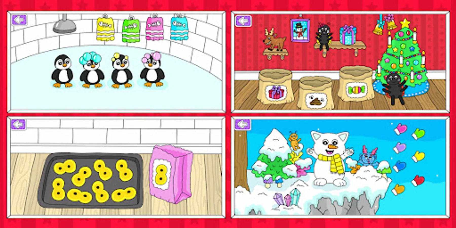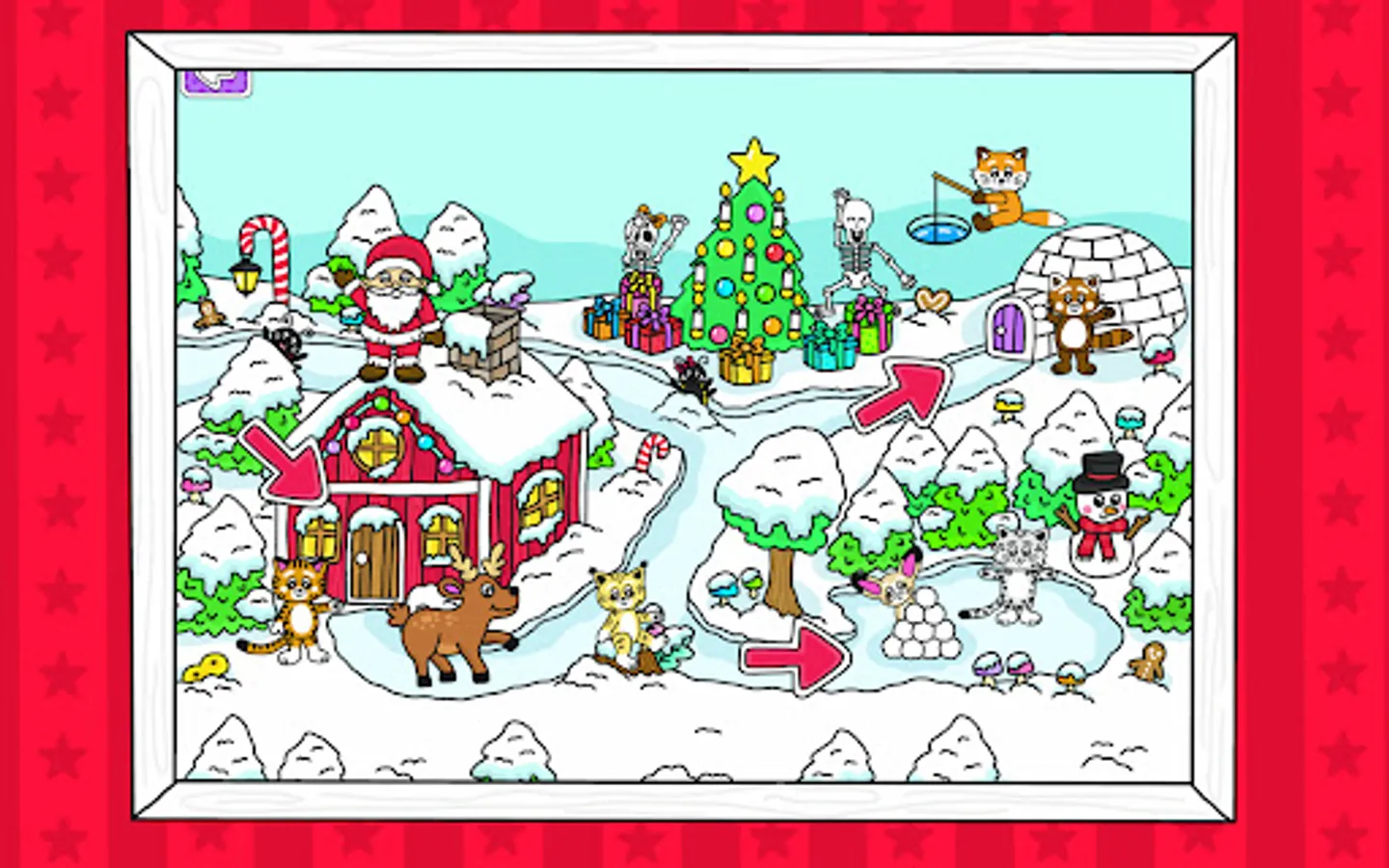 Timmy’s Winterland is a fun and educational game created with kids for kids. Join Timmy in his Winterland! Here you can visit Santa’s cabin and search for elves, give out Christmas gifts, make a snowman, visit the igloo, create toys in Santa’s workshop, play with the penguins and much more in a cosy winter landscape together with pleasant music and funny sound effects!