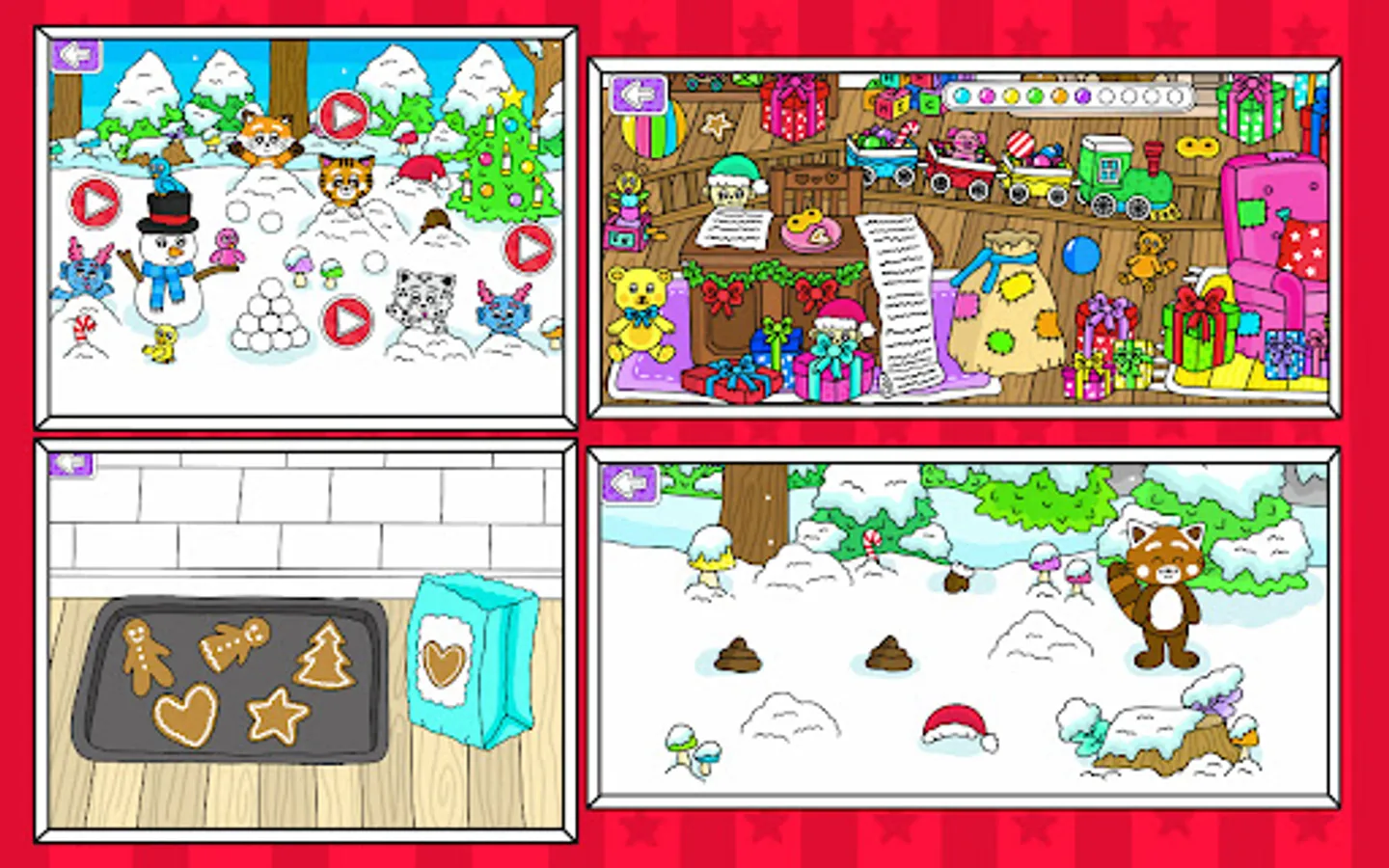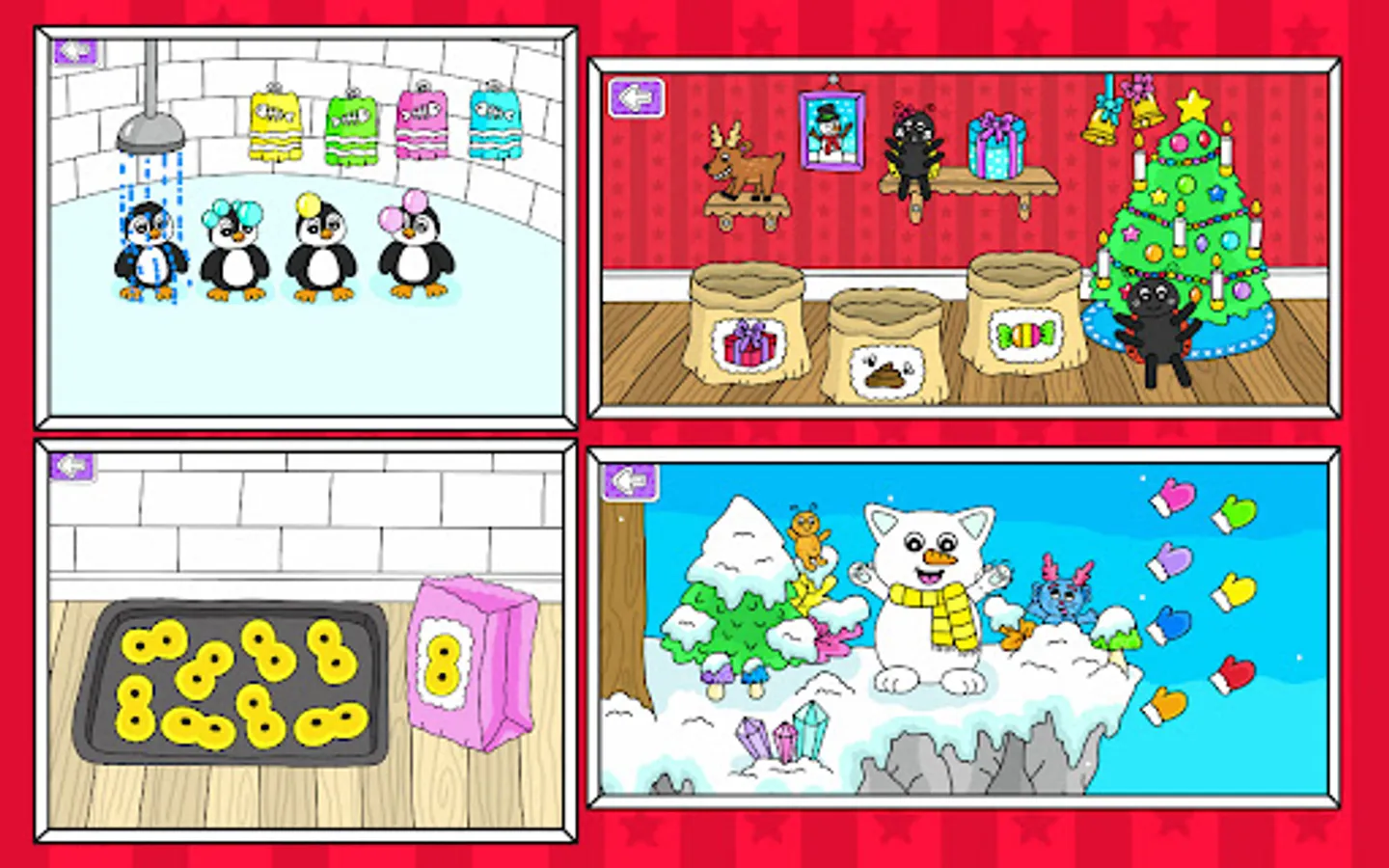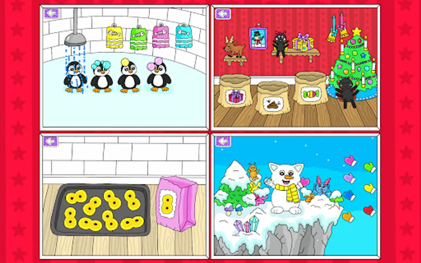 Timmy’s Winterland is a fun and educational game created with kids for kids. Join Timmy in his Winterland! Here you can visit Santa’s cabin and search for elves, give out Christmas gifts, make a snowman, visit the igloo, create toys in Santa’s workshop, play with the penguins and much more in a cosy winter landscape together with pleasant music and funny sound effects!
