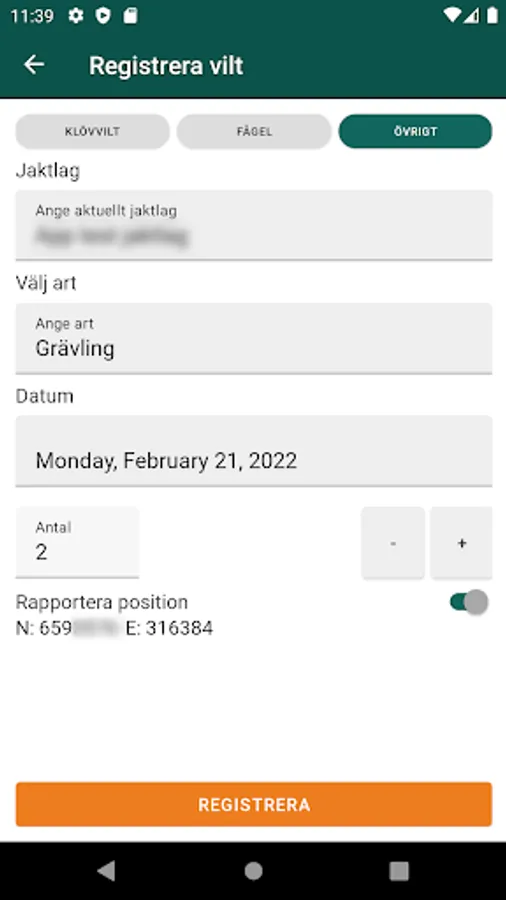 NOTE! To use the app, you need a hunting team key from your hunting team / hunting leader.