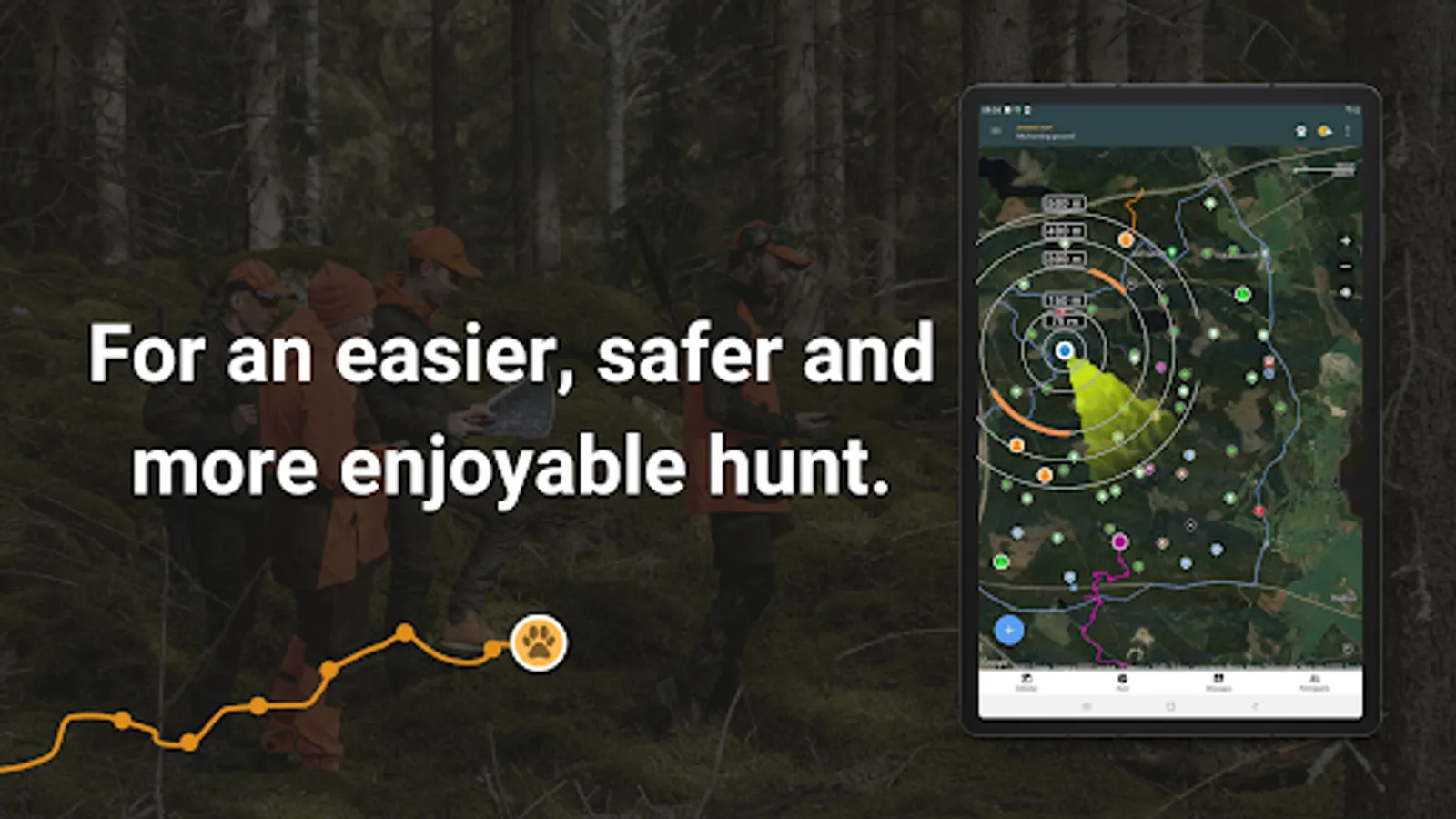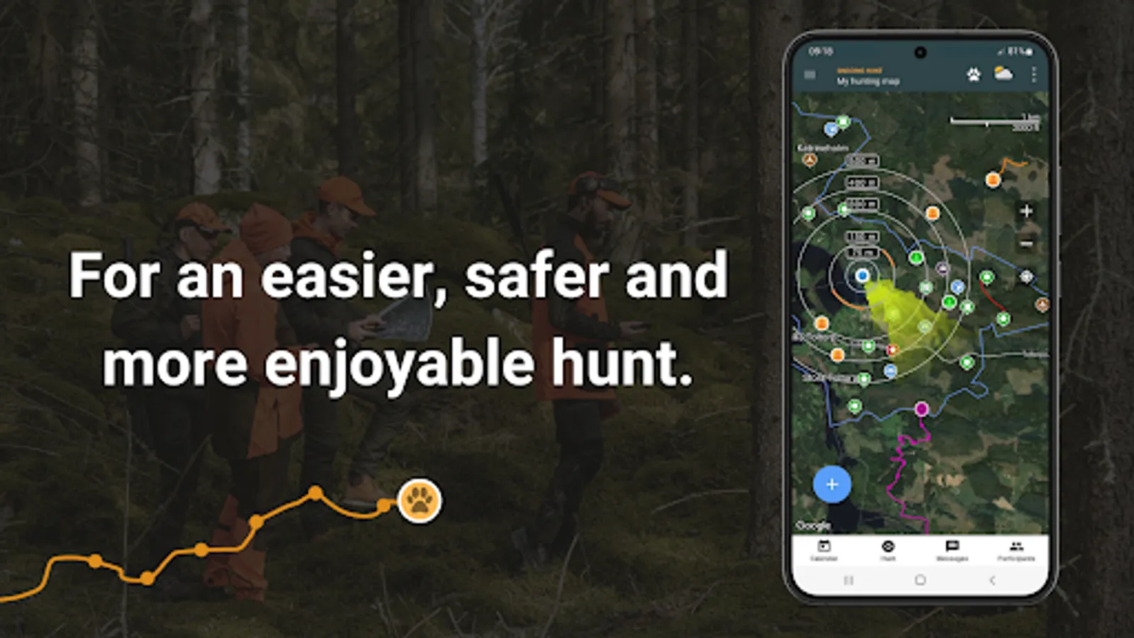 Start a hunt to see not only your hunting companions live on the map, but also participating dogs, for a safer hunt. Chat and send voice messages to each other for fast and smooth communication.