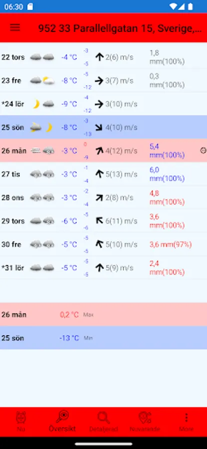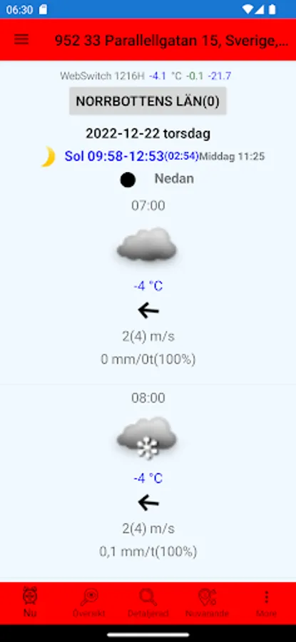 jsNordicWeather gives you a 10-day weather forecast with both details and an overview for the Nordic countries based on weather data from www.smhi.se. Forecasts can be displayed for your current position or saved fixed positions.