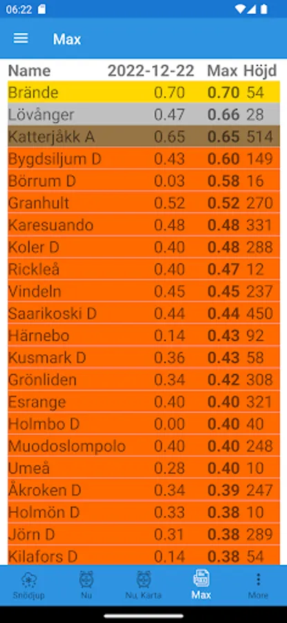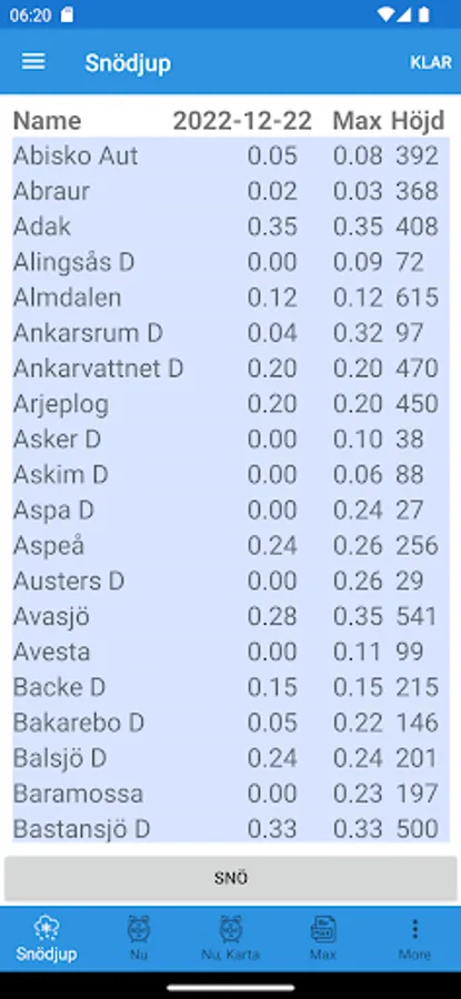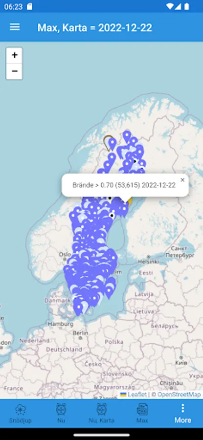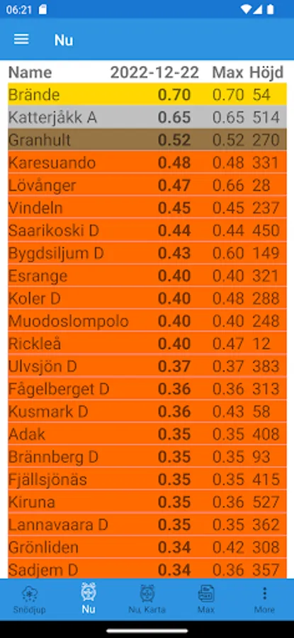 The snow depth map is intended to provide an overview snapshot of the observed snow depth in Sweden.