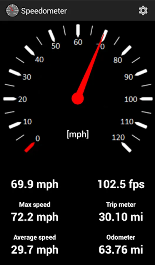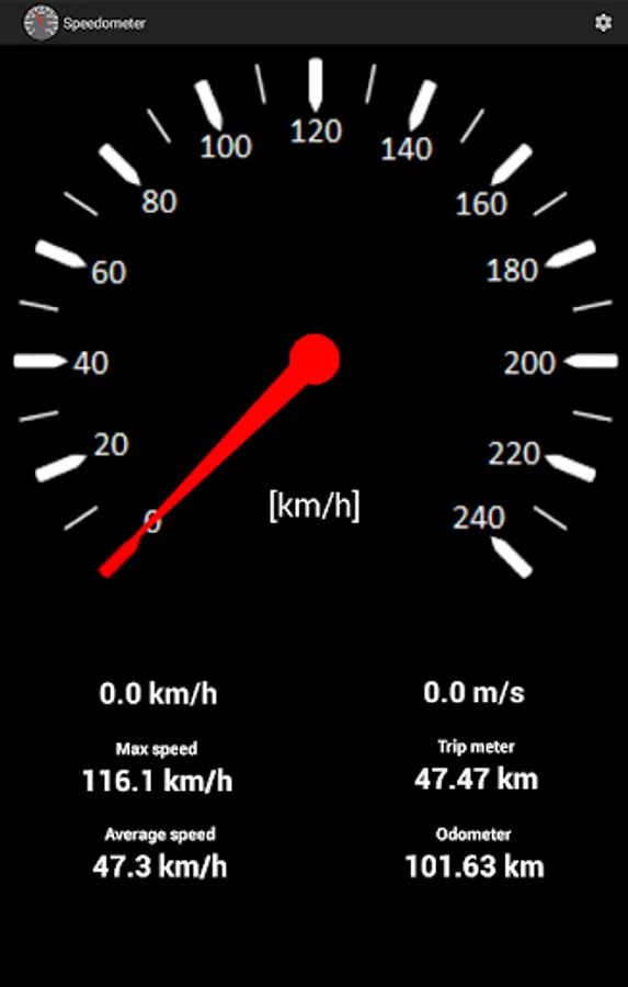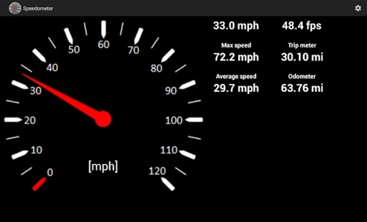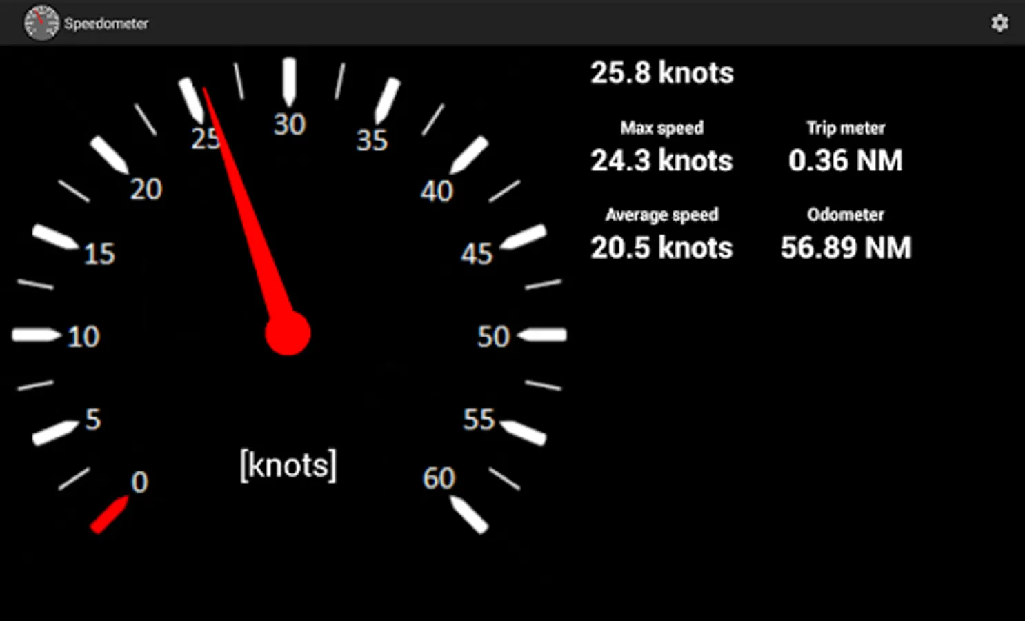 This application is a GPS-based Speedometer showing the speed of the device it is installed on. The speed is displayed both with an analogue gauge and as a digital value.