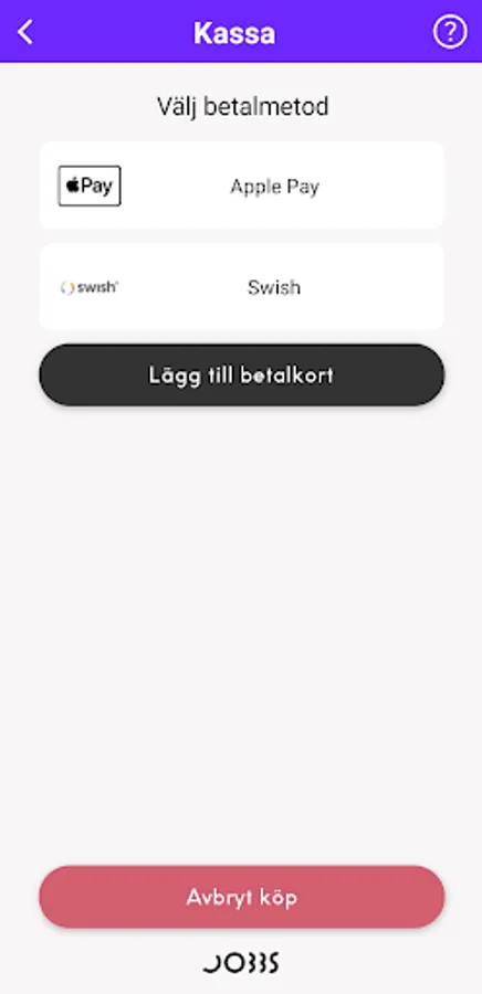 With Jobbs Pay, you can easily shop at the times you wish. Register in the app and scan the QR code at the entrance. Add items to your shopping basket by scanning the barcode on the item, pay by card, Swish or Apple Pay and then leave the store happy and satisfied!