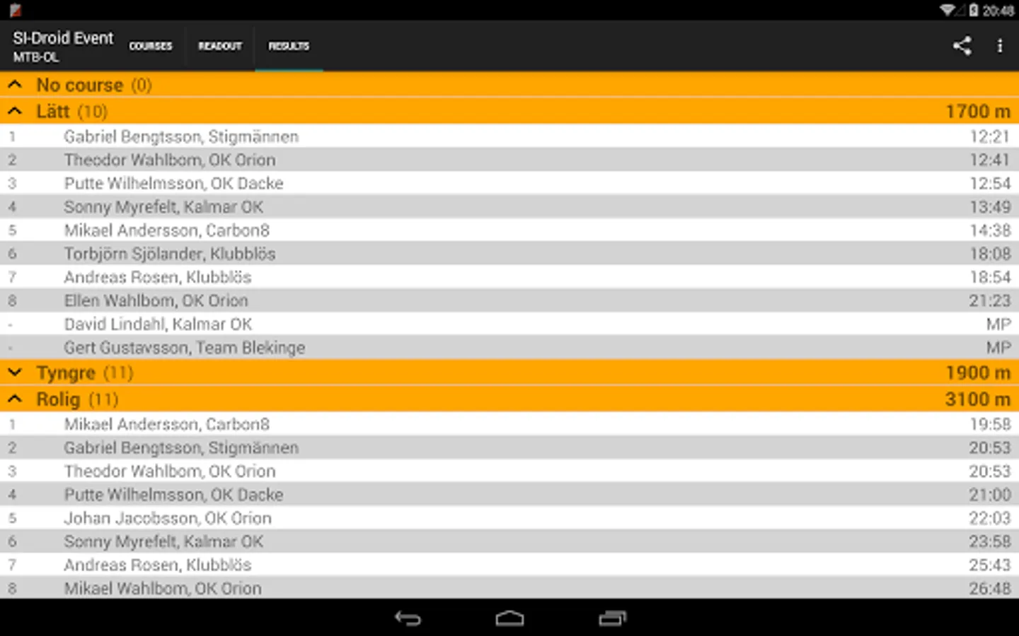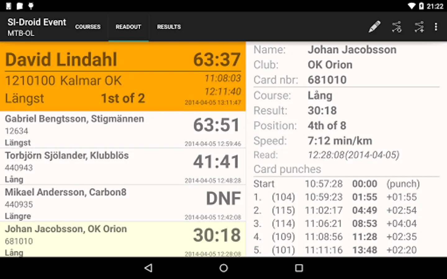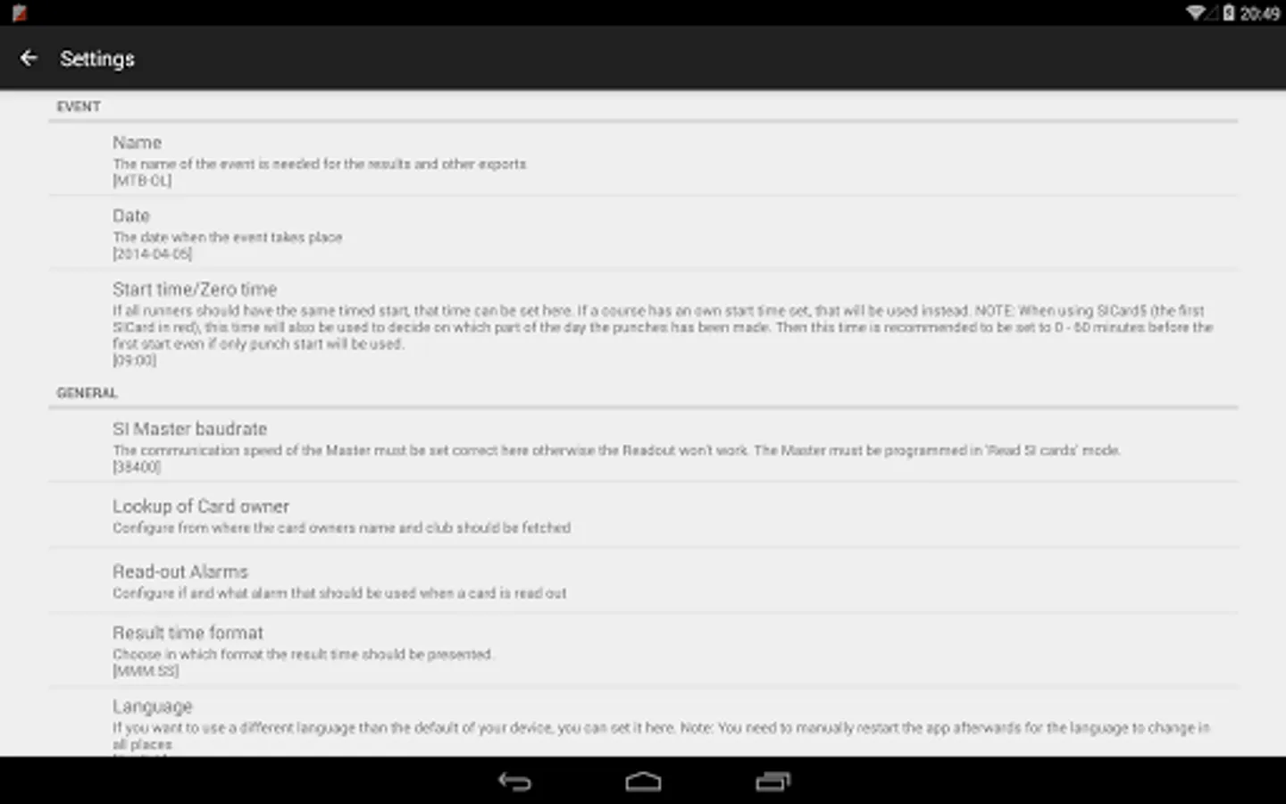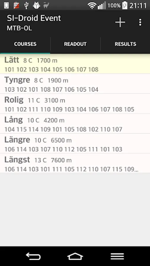 SI-Droid Event is an app that makes it possible to arrange simple orienteering events with SportIdent without having to bring a computer for the SICard readout. Just bring your mobile phone or tablet instead plus an SI Master and you are ready to readout the results from the runners cards.