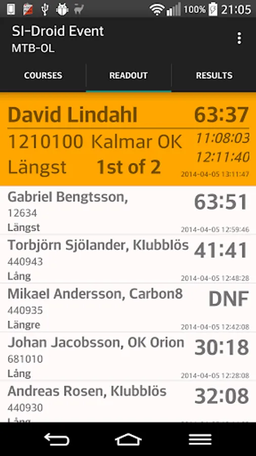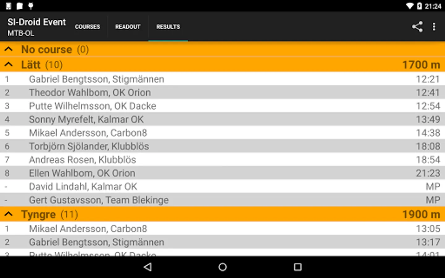SI-Droid Event is an app that makes it possible to arrange simple orienteering events with SportIdent without having to bring a computer for the SICard readout. Just bring your mobile phone or tablet instead plus an SI Master and you are ready to readout the results from the runners cards.