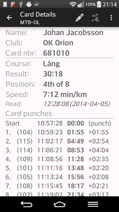 ✓ Automatically fetches the runners name and club from either the card, an own CSV file or from an SICard DB on the Internet (mostly Swedish runners)