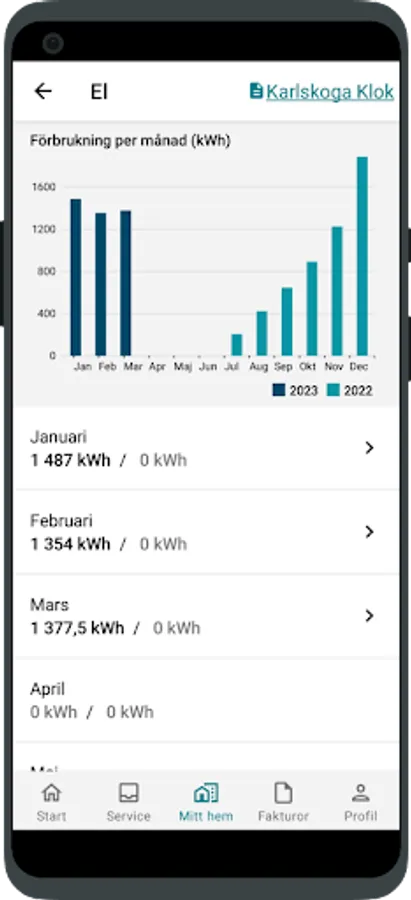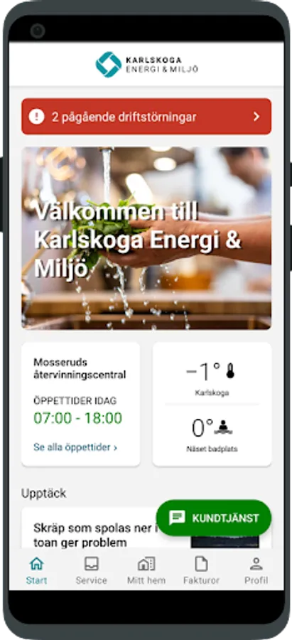 As a private customer of Karlskoga Energy and Environment, you can see information about your services and handle matters directly in our app.